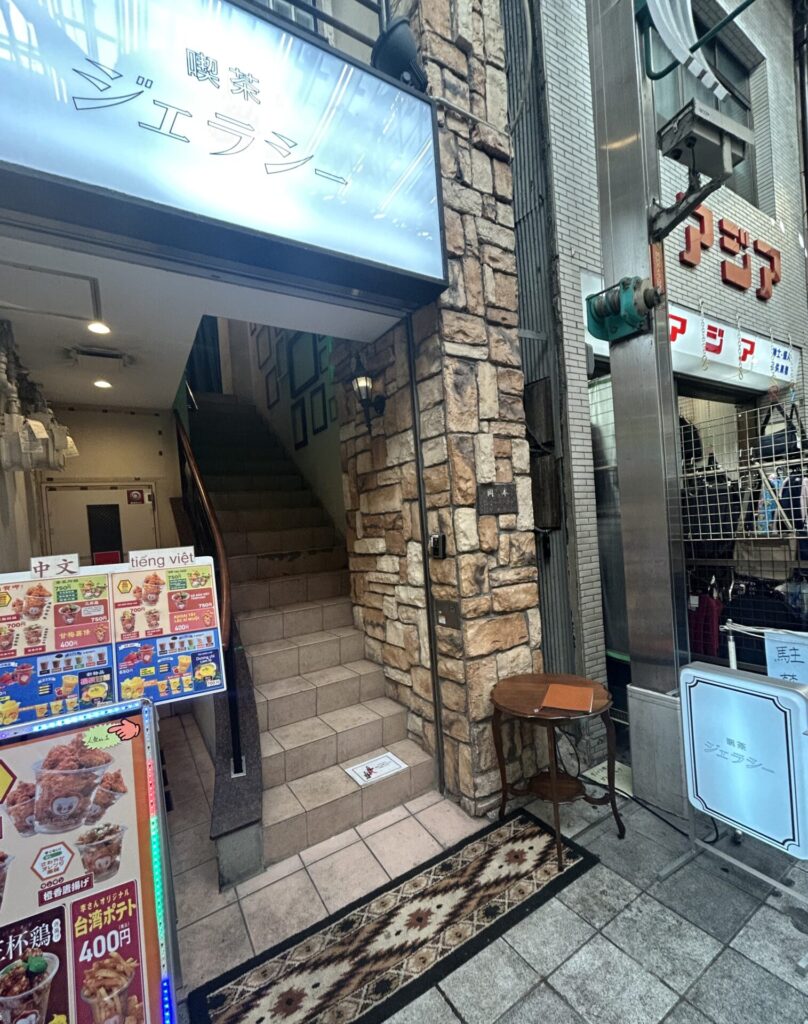 「喫茶ジェラシー」は階段を上がって2階にあります。