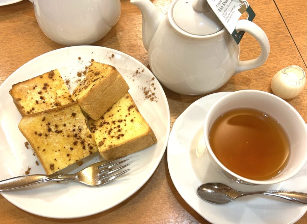 メニューは、コーヒーや紅茶、ソフトドリンク、パフェやぜんざいなどのスイーツ、さくっとしたトーストなどがあります。また、7時から10時30分のモーニングセットは、コーヒーとサンドイッチがついて580円となり、お手頃価格でおすすめです。